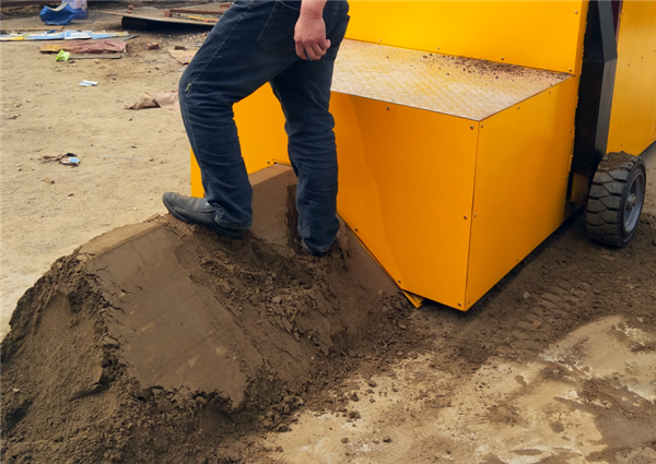 邊墻擠壓機(jī)成品超強(qiáng)的密實(shí)度(測(cè)試人員體重110kg,試驗(yàn)物料未放置石子和水泥,確保國(guó)外現(xiàn)場(chǎng)是有無(wú)任何問題,出廠之前必須試機(jī))